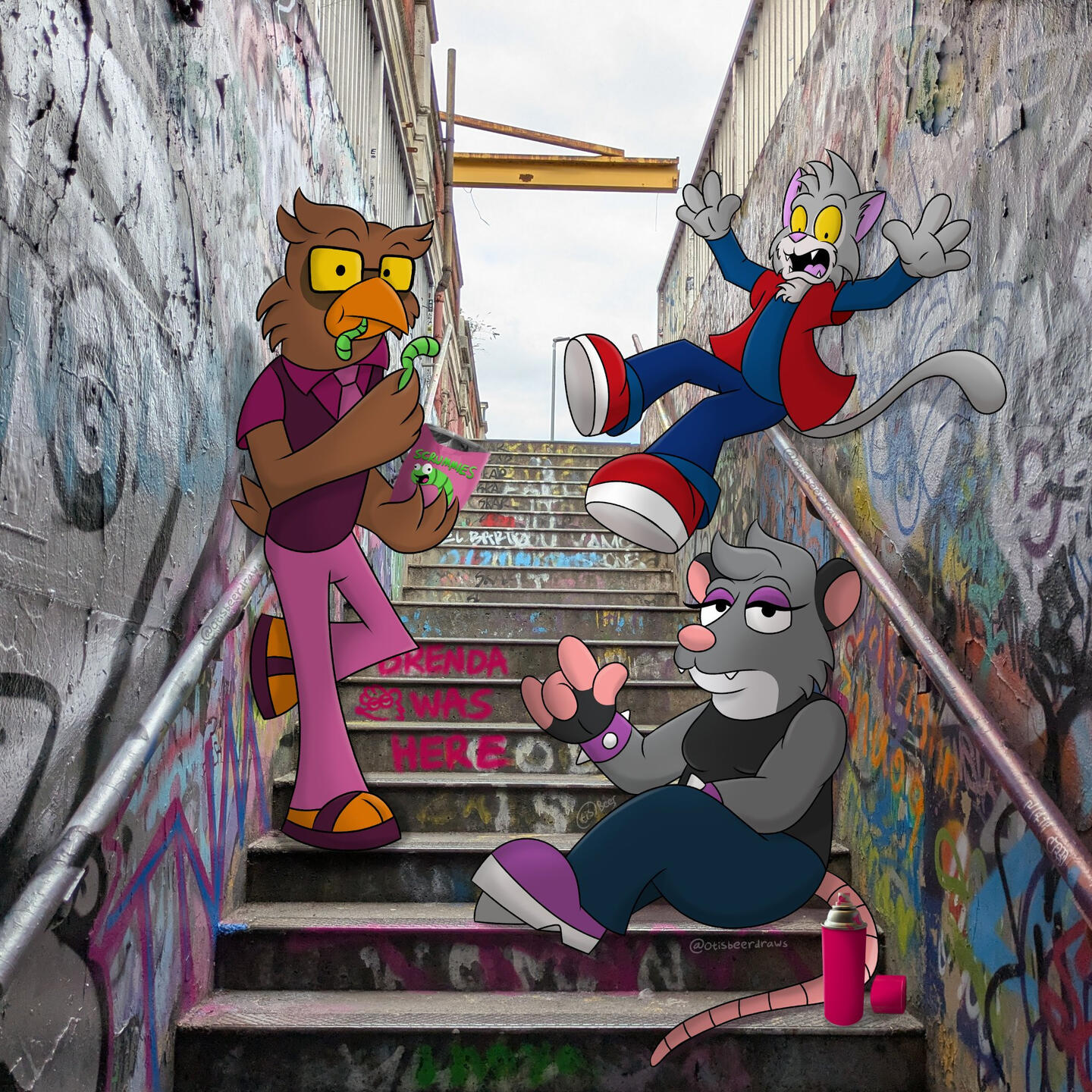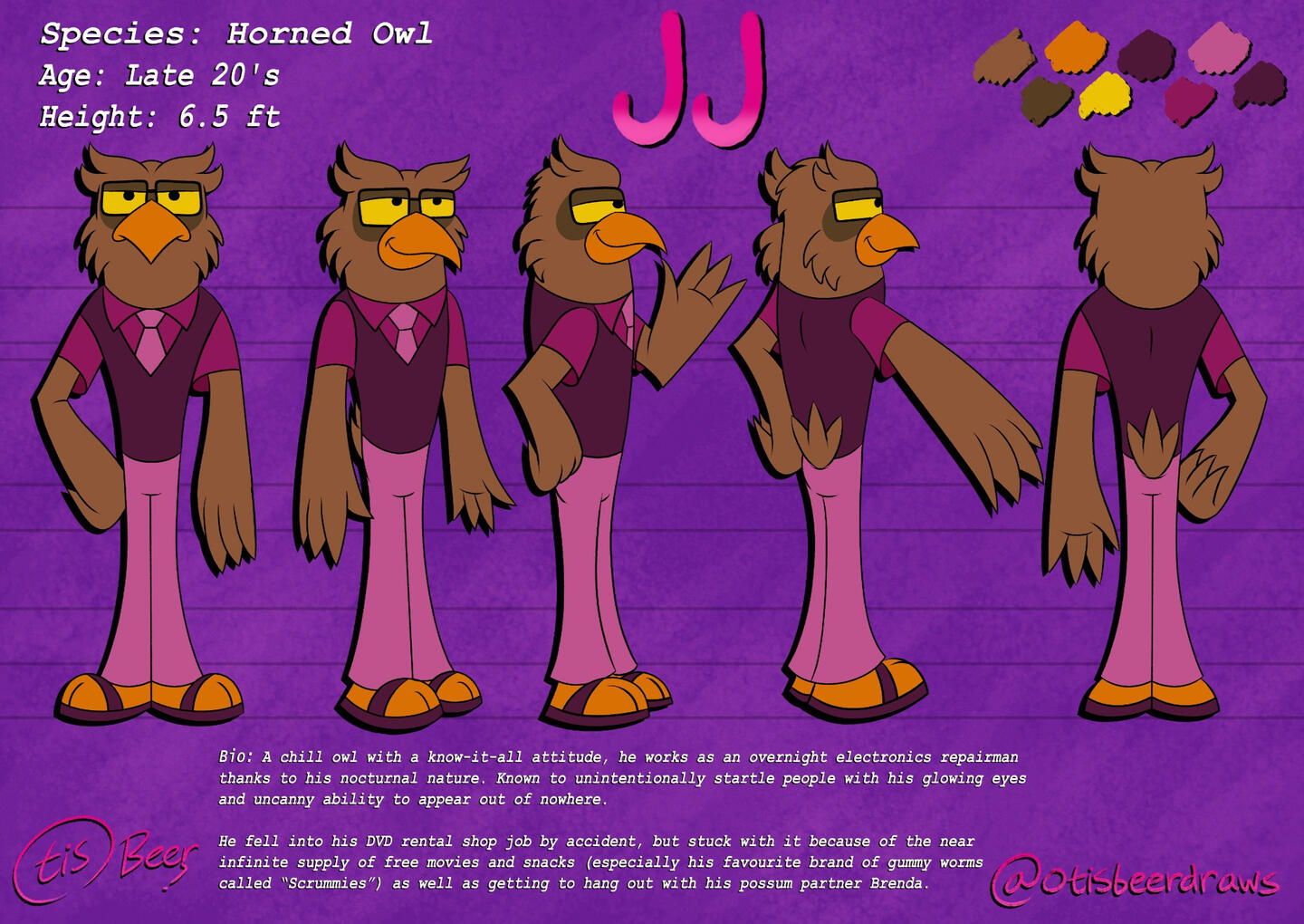 My name is Otis and I'm a mixed media artist from the UK!I specialise in 2D character designs and animation, while also creating 3D model backgrounds.